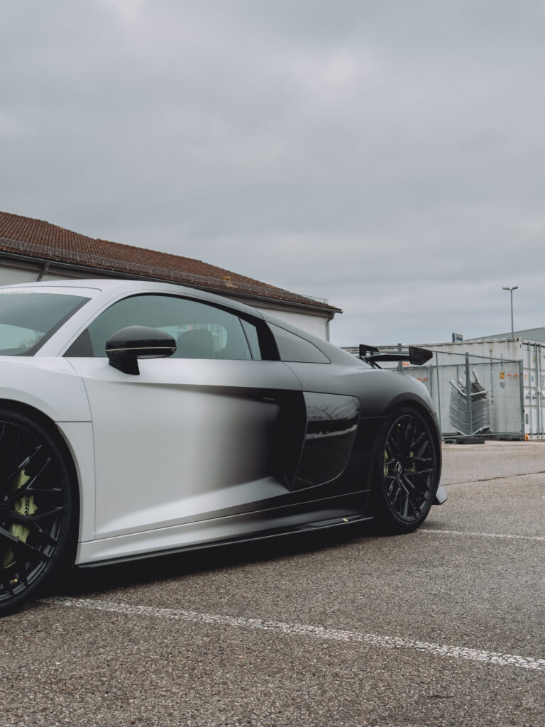 Jede Fläche wurde von Hand verarbeitet und exakt an die Linien des Audi R8 angepasst. Gerade bei einem Fahrzeug mit so vielen Kanten, Lufteinlässen und komplexen Formen ist Präzision entscheidend.