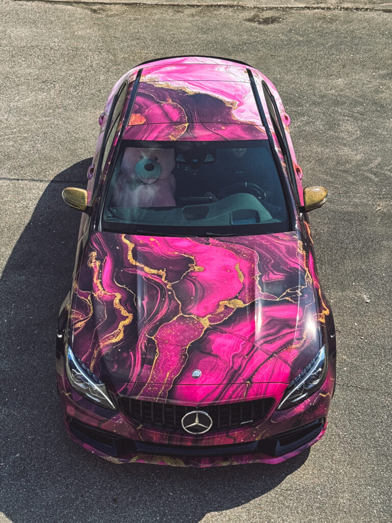 Für dieses Projekt kam der Mercedes C63 von ich.tina aus Passau zu uns, der bereits foliert war. Allerdings entsprach die vorhandene Digitaldruck Folierung weder optisch noch qualitativ dem, was man sich bei so einem Fahrzeug wünscht.